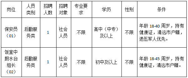1、保安員:負責清遠市清城區(qū)行政文化中心大樓轄區(qū)內的安全保衛(wèi)工作,維護治安秩序。