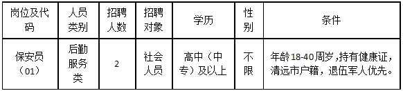 清遠(yuǎn)市清城區(qū)機(jī)關(guān)事務(wù)管理局因工作需要,根據(jù)《關(guān)于印發(fā)<清遠(yuǎn)市清城區(qū)機(jī)關(guān)事業(yè)單位專項(xiàng)工作聘員、合同制聘員以及后勤服務(wù)類人員管理辦法>的通知》(城區(qū)人社〔2022〕20號)文件精神,面向社會(huì)公開招聘后勤服務(wù)類人員2名,現(xiàn)將有關(guān)事宜公告如下: