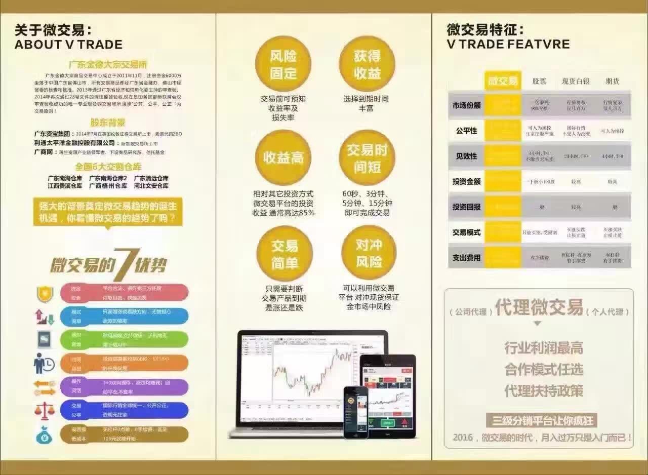微交易,是金融交易創(chuàng)新品種。特點是簡單,快捷。微交易是基于一種標(biāo)的資產(chǎn)在規(guī)定時間內(nèi)(例如未來的一分鐘、十分鐘、三十分鐘、一小時等)到期價格是低于、等于還是高于執(zhí)行價格(下單價格)的結(jié)果,決定是否獲得收益。