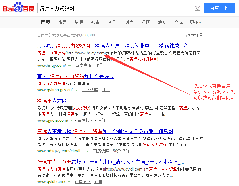 恭喜“清遠(yuǎn)人力資源網(wǎng)”m.sw-hy.com榮登百度搜索清遠(yuǎn)地 區(qū)首位。清遠(yuǎn)人力資源網(wǎng)是由清遠(yuǎn)市人力資源市場指導(dǎo)、清遠(yuǎn)市錦繡 前程人力資源有限公司運(yùn)營的官方求職招聘平臺。從3月份正式推 廣到現(xiàn)在,本網(wǎng)站已經(jīng)吸引了眾多企業(yè)與求職者注冊。